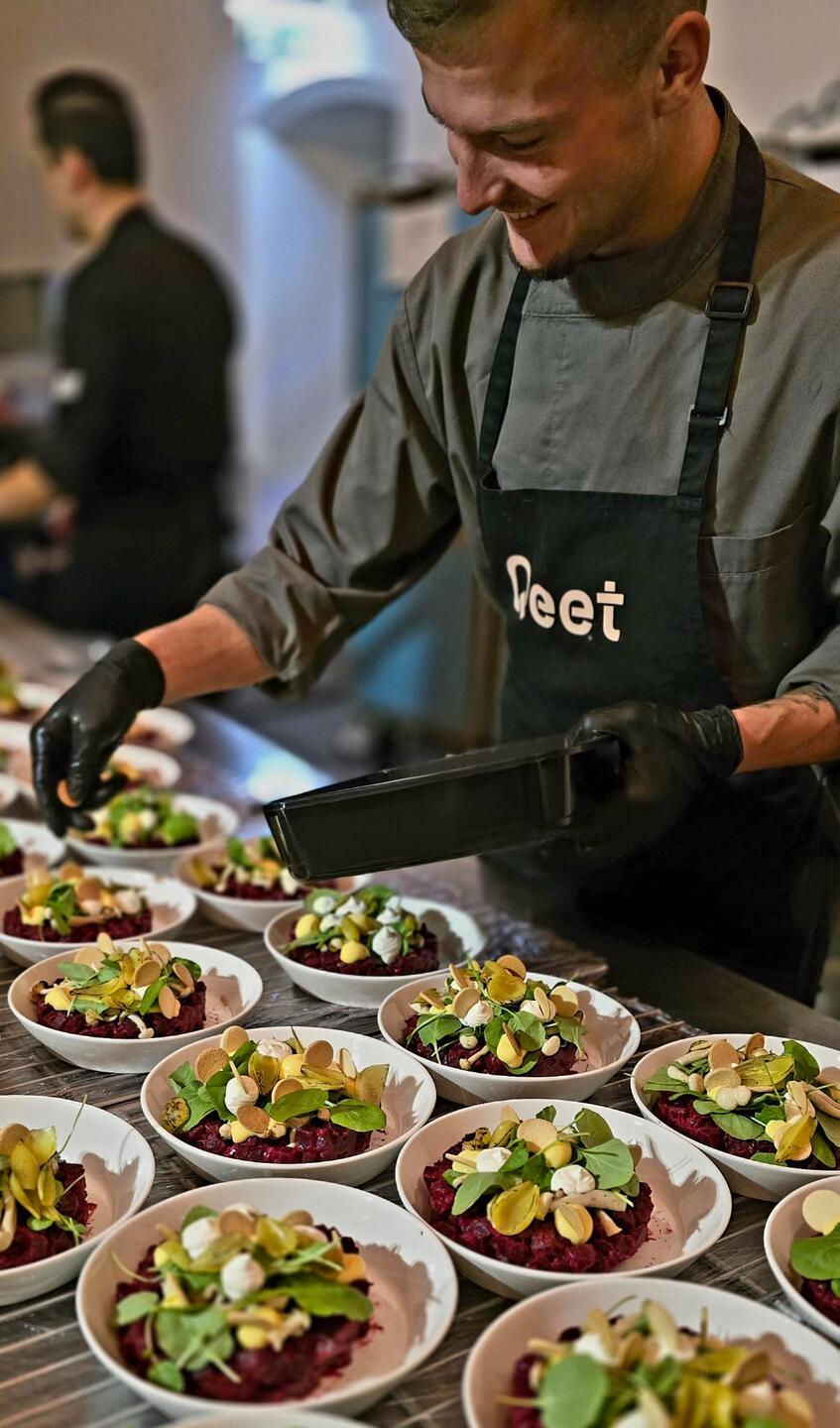 Voor onze catering werken wij met Qeet uit Utrecht. Qeet staat voor lokale, duurzame en smaakvolle catering. Qeet werkt nauw samen met lokale boeren en producenten om de meest verse en verantwoorde ingrediënten te selecteren. Dit resulteert in heerlijke hapjes en dranken die niet alleen goed smaken, maar ook goed doen. Deze aanpak minimaliseert de ecologische voetafdruk en ondersteunt daarmee tevens de lokale gemeenschap. Wel zo sociaal! Of het nu gaat om een intiem diner of een groot evenement, Qeet biedt een culinaire beleving die duurzaamheid en smaak naadloos combineert.